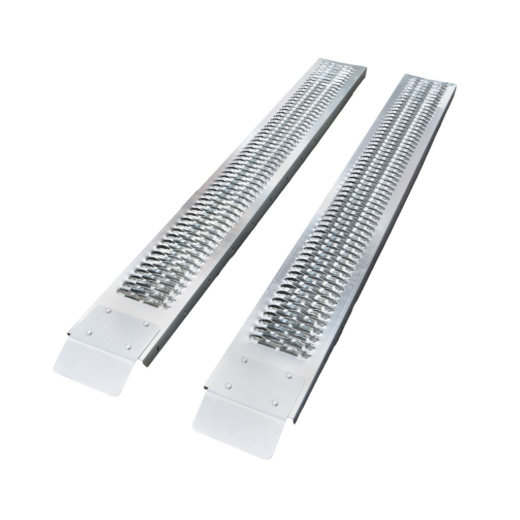 A rámpák maximális teherbírása 450 kilogramm, így számos tárgy, köztük ATV-k, fűnyírók, erőgépek, kézi teherautók, talicskák, bútorok, tolószékek és egyéb felszerelések rakodására alkalmasak. A készlet két rámpát tartalmaz, amelyek lehetővé teszik a berendezések stabil és könnyű be- és kirakodását. A rámpákat úgy tervezték, hogy sokféle elem befogadására alkalmasak, így sokoldalúan használhatók különféle alkalmazásokhoz. Akár nehéz gépeket kell rakodnia, akár bútorokat kell mozgatnia, ezek a rámpák segíthetnek Önnek. A rámpák tömör acélból készülnek, biztosítva szilárdságukat és tartósságukat.