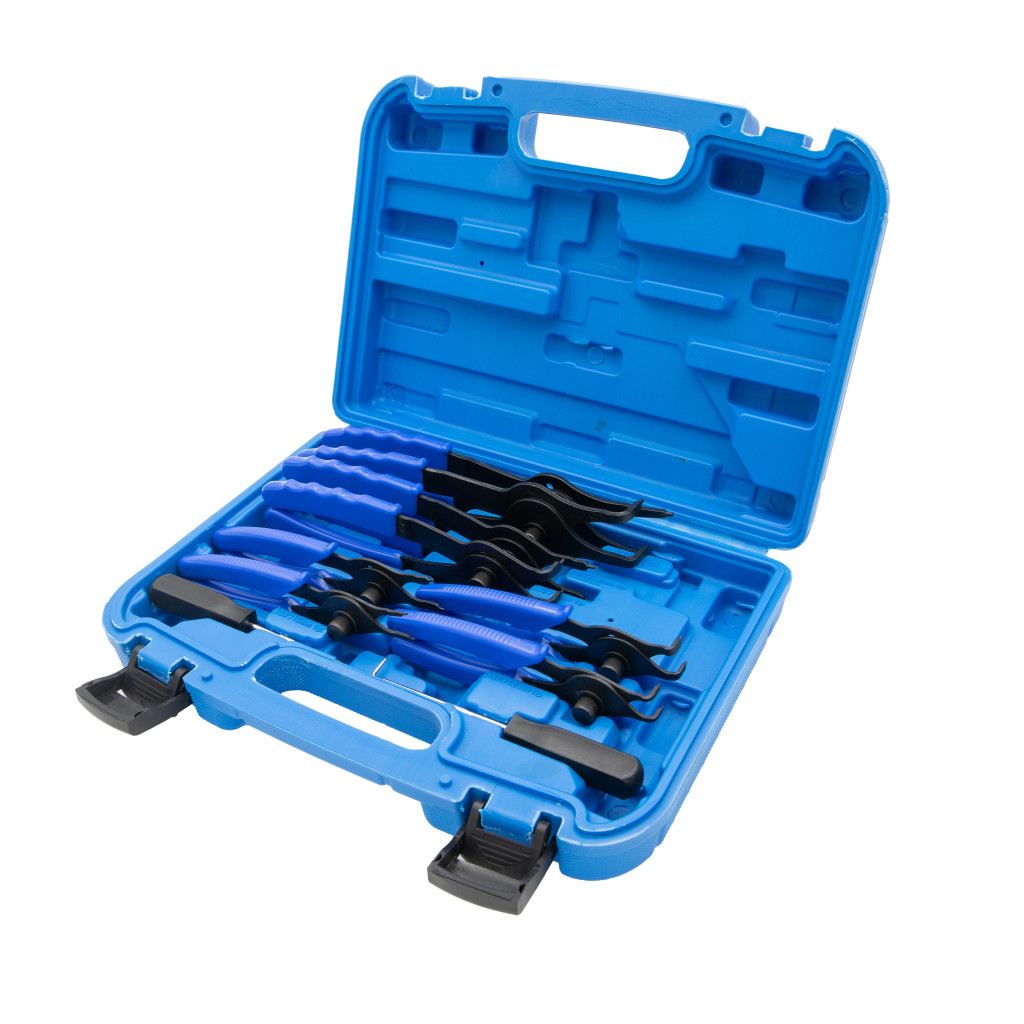 Ez a készlet különféle méretű és hegykonfigurációjú fogókat tartalmaz, amelyek biztosítják a kompatibilitást a különböző seegergyűrű-alkalmazásokkal. Ezeket a fogókat aprólékosan, minőségi anyagokból készítették, hogy biztosítsák a tartósságot és a hosszú élettartamot. A hajlított és egyenes csúcskialakítás sokoldalúságot biztosít a különböző tájolású és szögű seegergyűrűk eléréséhez.