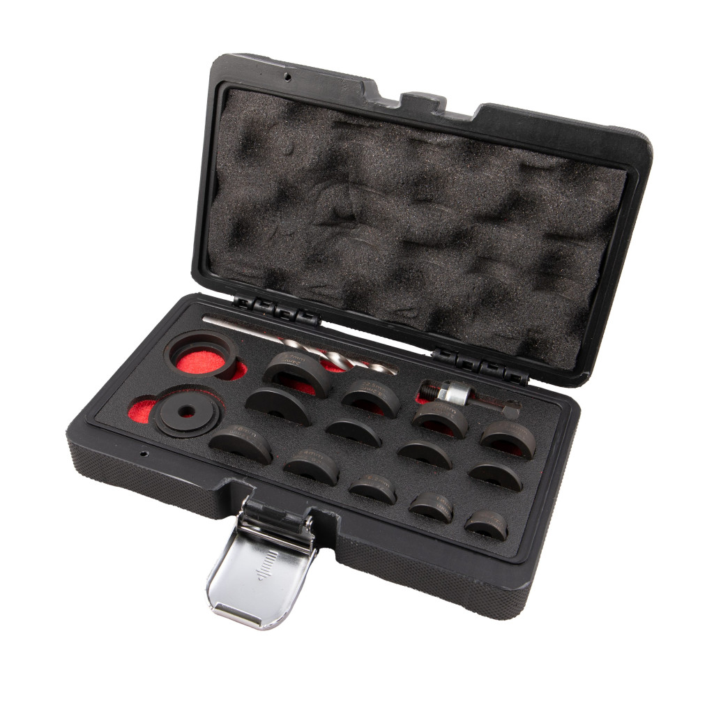 A szerszámkészlet 17mm-től 32mm-ig terjedő furatok tartományát fedi le, rugalmasságot biztosítva a különböző méretű érzékelőkhöz. A szerszámot úgy tervezték, hogy lyukakat üthessen a lökhárítóba vagy a sárvédőbe anélkül, hogy a környező festéket károsítaná. Ez a funkció segít megőrizni a jármű esztétikus megjelenését az érzékelő beszerelési folyamata során. Akár 5 mm vastagságú műanyag lökhárítókba is képes lyukakat vágni, így számos járműmodellhez és lökhárító anyaghoz alkalmas.