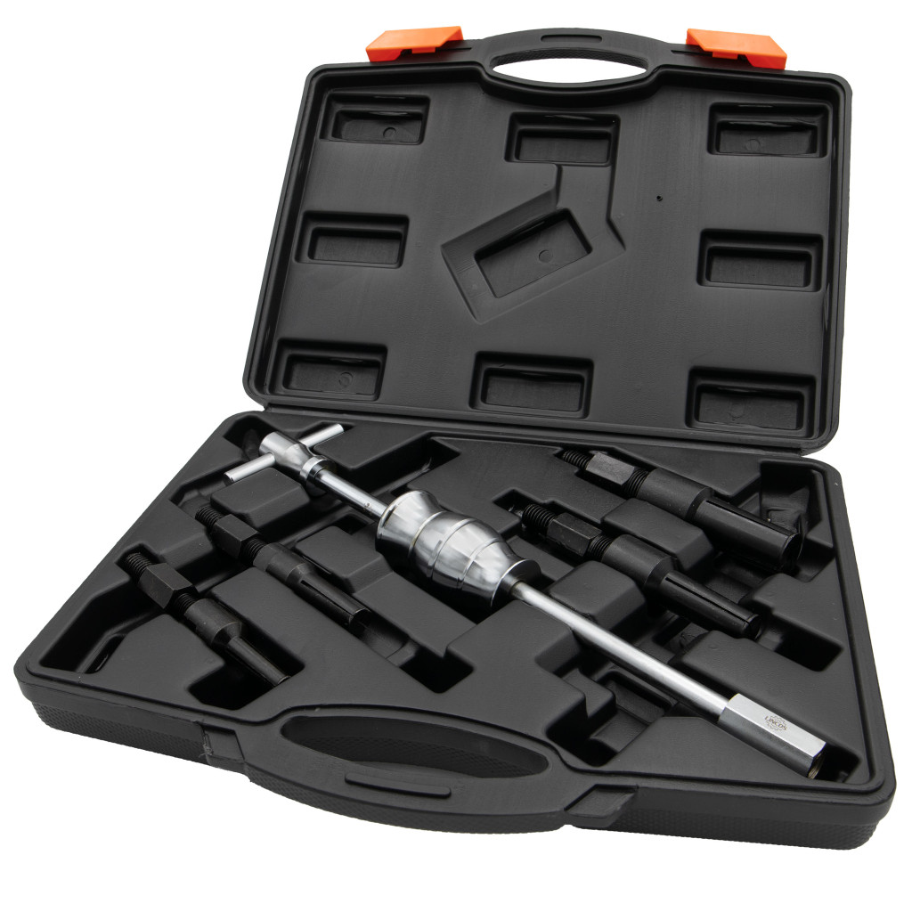 - Hatékony és sokoldalú: A készletünk tartalmaz egy csúszókalapácsot, amely megkönnyíti a belső rögzítést igénylő csapágyak és csapágyperselyek, például vezetőcsapágyak húzását. A markolat méretei 11-16, 15-19, 18-25, 26-32 mm között mozognak, így a húzási munkák széles skálájára alkalmas. A csúszókalapács mérete: 377mm.
