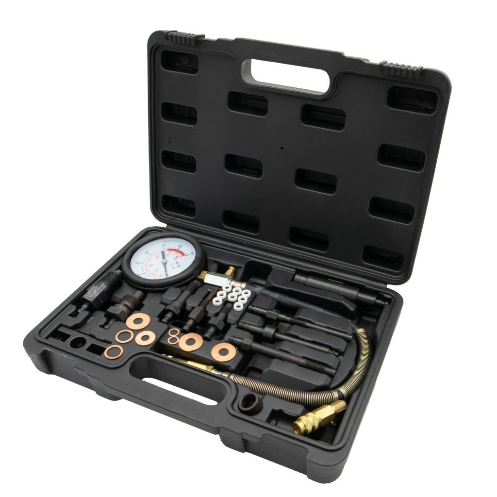 Izzítógyertya adapterek és próbabefecskendezők széles választéka a dízelmotorok kompressziójának ellenőrzéséhez. Kétlépcsős nyomásmérő 0-70bar / 0-1000psi gyorskioldó csatlakozási rendszerrel.