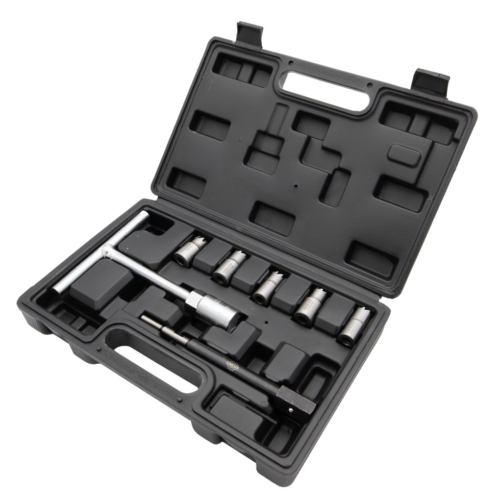 A készlet tartalmaz szögben és lapos végű marókat, amelyek különféle munkákhoz használhatók, beleértve a Mercedes CDI, Delphi, Bosch (BMW, PSA, Renault, Ford), és Bosch (Mercedes CRD) típusú porlasztócsúcsokat, valamint Fiat és Iveco modelleket.