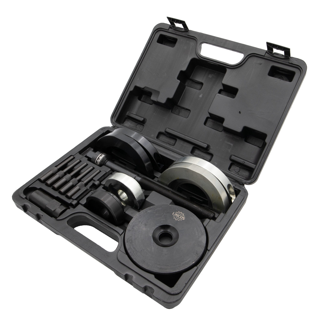 A kerékagy és kerékcsapágy kihúzó és beszerelő készlet egy átfogó készlet, amelyet kifejezetten a 72 mm-es kerékagy méretű járművek kerékcsapágyainak hatékony eltávolítására és beszerelésére szabtak. Az Audi, a Skoda, a VW és a Seat számos modelljével kompatibilis, így sokoldalú kiegészítője bármely professzionális eszköztárnak.