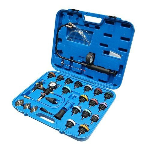 Hűtőfolyadék szivárgás ellenőrzéshez, tisztításhoz, nyomásellenőzéshez (mérési tartomány 0-2.5bar), 17 tesztsapka, hűtősapka adapter. Hűtőfolyadék cseréhez, feltöltéshez