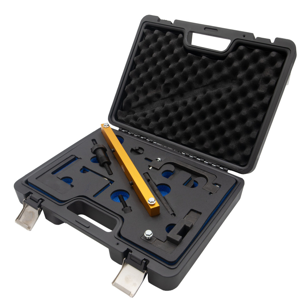 Ezt az időzítő szerszámkészletet kifejezetten az 1,6, 1,8 és 2,0 literes BMW N42 és N46 lánchajtású motorokhoz tervezték. A készlet minden szükséges eszközt tartalmaz a motor időzítésének pontos beállításához, így elengedhetetlen a vezérműlánc cseréjéhez, motorjavításhoz vagy egyéb karbantartási feladatokhoz.
