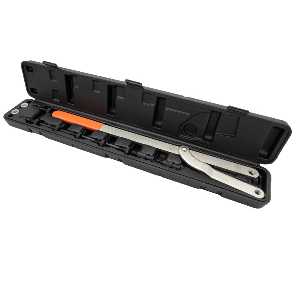 Kifejezetten a ventilátor tengelykapcsolóinak le- és felszerelésére, valamint a vezérműtengely-tárcsák elforgatására vagy visszaszorítására tervezték.