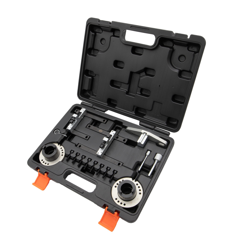 A készlet átfogó eszközkészletet tartalmaz, amely szükséges a vezérműtengely és a főtengely pontos beállításához és rögzítéséhez, valamint a VCT egységek beállításához. Kiváló minőségű anyagokból készült, minden szerszám úgy van tervezve, hogy megfeleljen a rendszeres használat igényeinek.