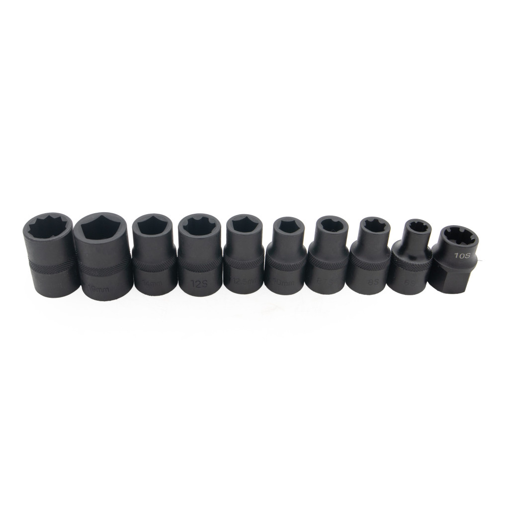 Ezenkívül a készlet tartalmaz egy 10 pontos, 20 mm-es aljzatot kifejezetten a Honda Civic alsó vezérlőkar csavarjaihoz, amely biztosítja a biztonságos illeszkedést és az egyszerű eltávolítást vagy beszerelést. Az ötszögű foglalatok speciális lefedettséget biztosítanak a fék- és üzemanyagszivattyú rögzítésekhez, például egy 10 mm-es és 12,5 mm-es aljzat a Nissan számára, valamint egy 19 mm-es aljzat a PSA és a Renault féknyereg rögzítőlemezeinek rögzítéséhez. Van egy 14 mm-es ötszögű foglalat is, amely tökéletes a Smart, Astra G és Zafira járművek féknyereg rögzítőlapjaihoz.