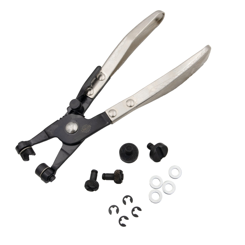 A cserélhető pofákkal ellátott tömlőbilincs fogó nélkülözhetetlen eszköz az autóiparban és a mechanikai alkalmazásokban, amelyek célja a tömlőbilincsek gyors és hatékony felszerelése és eltávolítása. Ez a fogó cserélhető pofákkal van felszerelve.