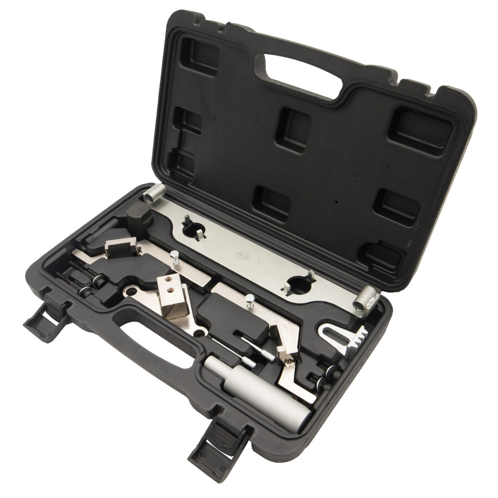 Ezt a vezérlésrögzítő szerszámkészletet kifejezetten a 2.0 és 2.4 turbómotorokkal felszerelt Opel, Saab és Chevrolet járművekhez tervezték. Minden szükséges eszközt biztosít a vezérműtengelyek, a főtengely és a láncfeszítő alkatrészeinek beállításához és tartásához, így elengedhetetlen a főbb motormunkákhoz, mint például a vezérműlánc cseréje vagy az időzítő alkatrészek beállítása. A készlet biztosítja a precíz beállítást és a kritikus motoralkatrészek biztonságos reteszelését, sima és hatékony javítást biztosítva.