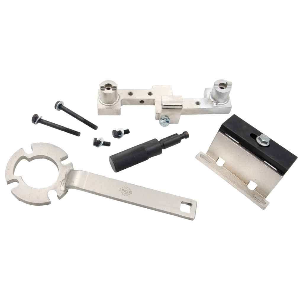 Ezt a vezérlésrögzítő szerszámkészletet kifejezetten Ford 2,5 literes motorokhoz, valamint számos 1,6–2,5 literes és 2,4D motorral rendelkező Volvo modellhez tervezték. Alapvető fontosságú a főtengely biztonságos rögzítéséhez, miközben a központi szíjtárcsa anyáján dolgozunk, amely gyakran rendkívül szoros és nehezen eltávolítható. A szerszámkészlet kompatibilis a HUBA, HUWA és HYDA motortípusokkal, pontosságot és egyszerűséget biztosítva a vezérműszíj- vagy lánccserék, motorfelújítások, vagy bármilyen nagyobb javítási munka során.
