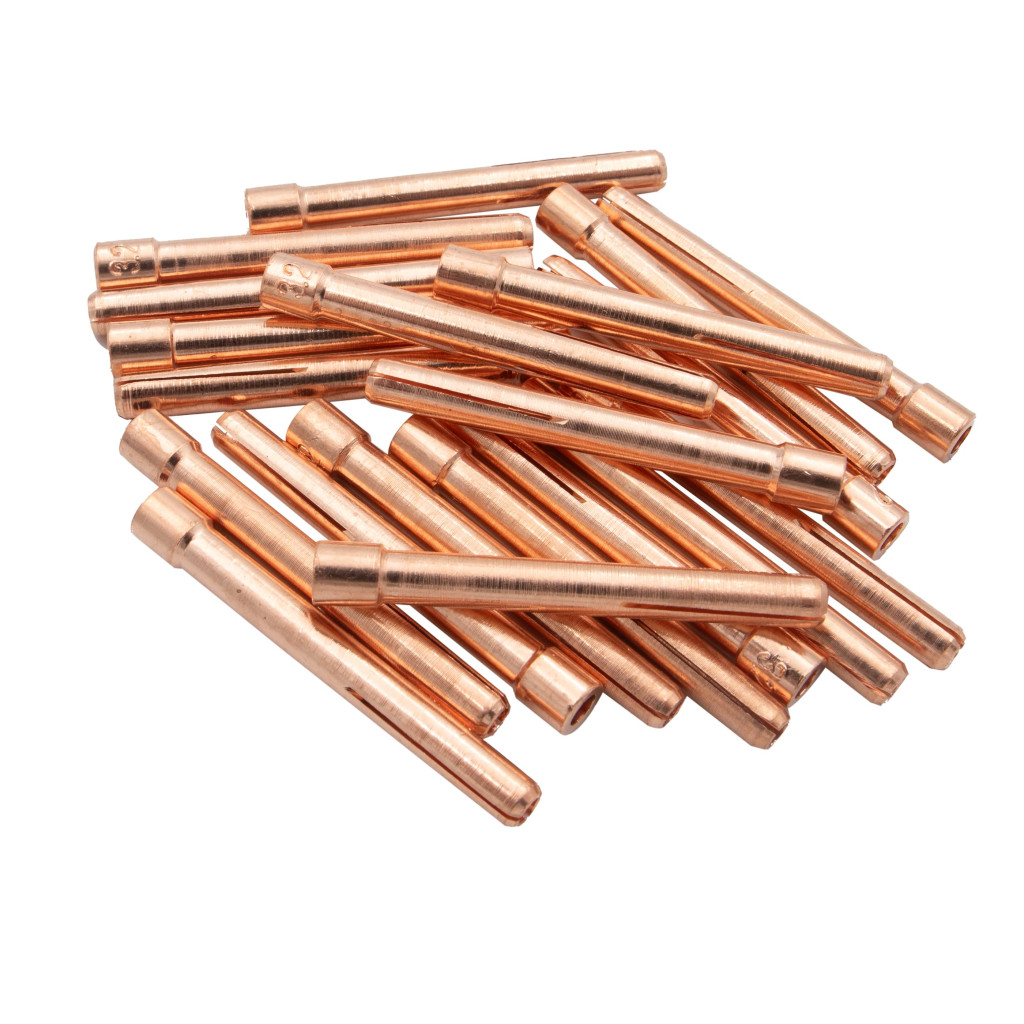 Szorítópatron WP-17 TIG pisztolyhoz, 10N25, φ3,2 mm-es wolfram elektródához. Stabilitást és pontosságot biztosít a folyamatos hegesztéshez.