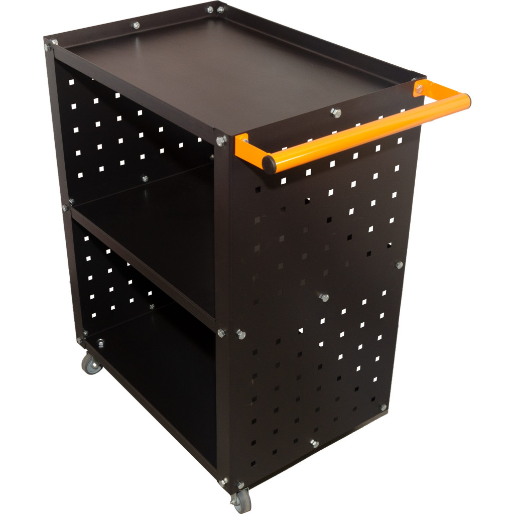 Az Műhelykocsi 58x40cm polcokkal, perforált oldalfallal lehetővé teszi, hogy kényelmesen dolgozhasson a műhelyében. A polcokon tárolt szerszámok és kisebb gépek mindig kéznél lesznek, így nem kell állandóan keresgélni a szükséges eszközök után. Töltse az idejét a munkával, ne a szerszámok keresésével!