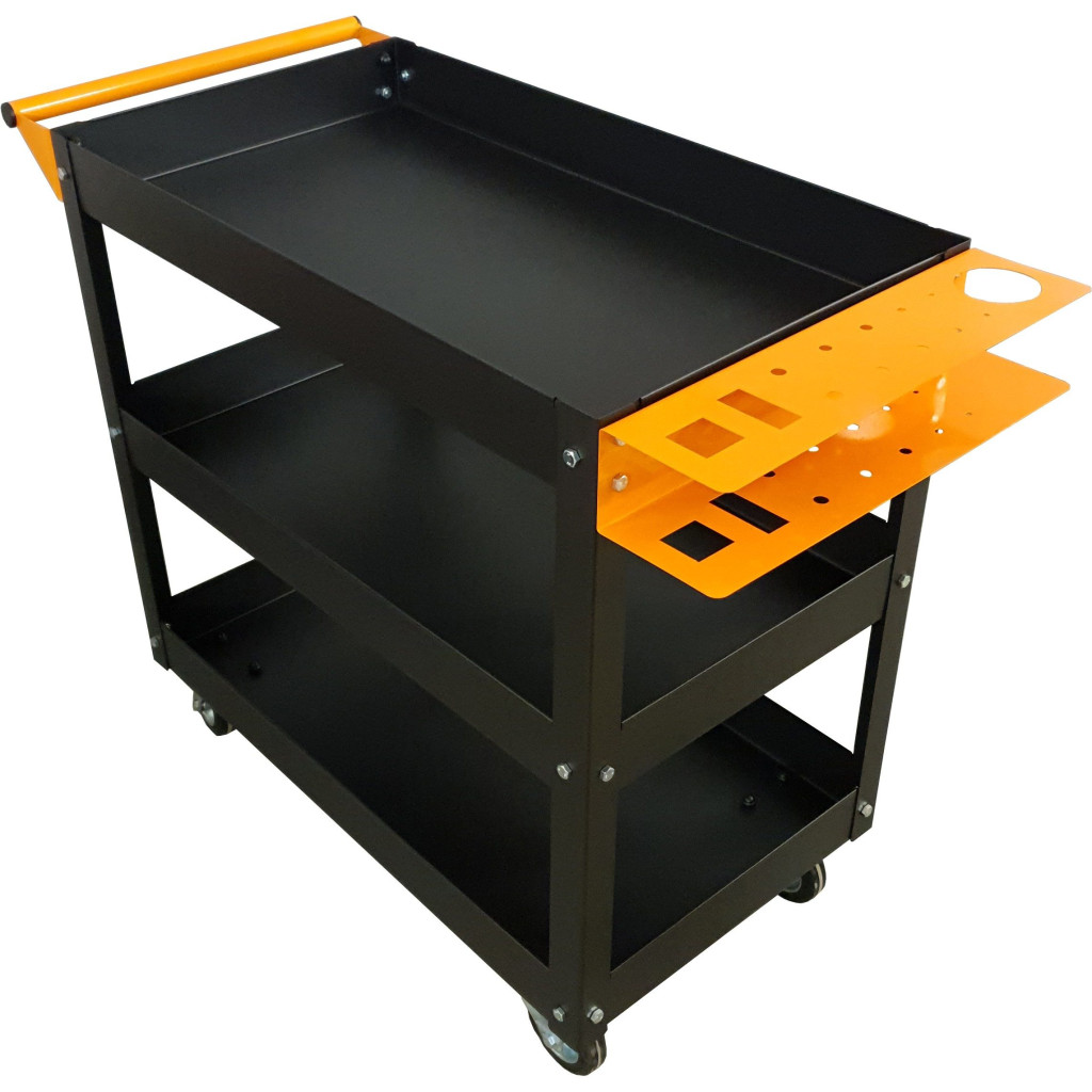 A műhelykocsi szerszámtartóval minden szerszámod és kisebb géped egy helyen lesz, így nem kell többé az idődet és energiádat a keresgélésre pazarolni! A három polcos gurulós műhelykocsi szerszámtartóval tágas tároló- és szállítási lehetőséget nyújt a szerszámoknak, valamint a kisebb gépeknek is. A tárolópolcok méretei 80x45cm, és a teljes mérete kerekekkel és szerszámtartóval 102x45x83cm.
