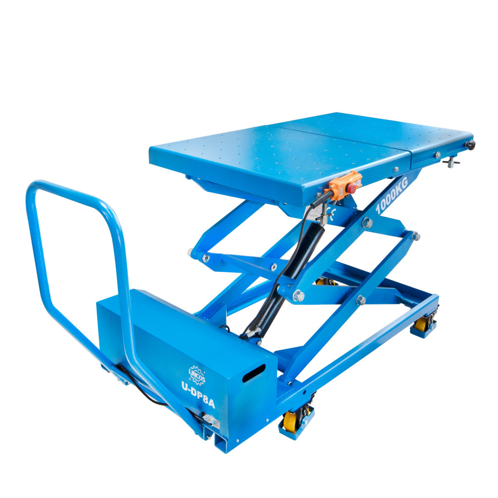 Az emelőasztal pneumatikus meghajtással működik, ami zökkenőmentes és megbízható emelési műveleteket biztosít. Ez a pneumatikus rendszer lehetővé teszi a pontos vezérlést és a nehéz alkatrészek hatékony kezelését, így alkalmas a motor, a sebességváltó és az EV akkumulátorok szervizelésére.