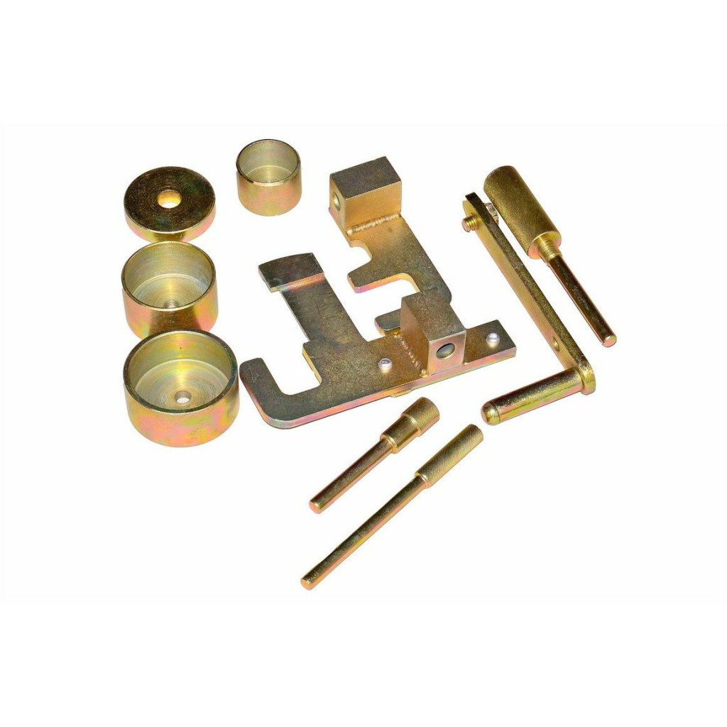 Vezérlés rögzítő szerszámkészlet, Renault, Opel és Nissan 1.5, 1.9, 2.2, 2.5 DCI-hez. A készlet tartalmazza a vezérműtengely, a főtengely rögzítőket és a vezérműszíj-feszítő szerszámokat.