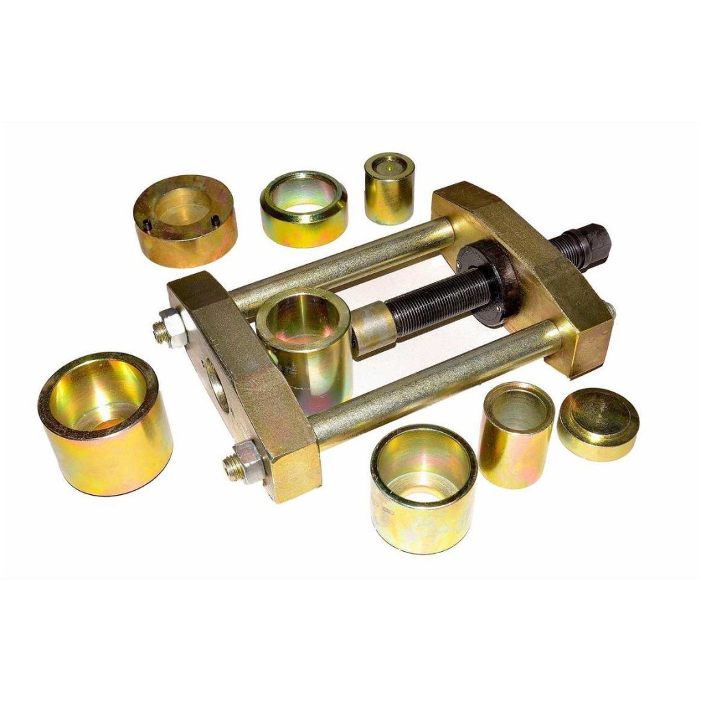 Univerzális prés csapok, szilentek, gömbcsuklók és sok olyan elem extrudálásához és préseléséhez, amelyek a prés méretein belül vannak. Lehetővé teszi a felső és alsó gömbcsuklók be- és kiszerelését a vezérlőkar eltávolítása nélkül. A menetes részek precíziósan olyan anyagból készülnek, amely magas kopásállósággal és nyúlás ellenállással rendelkezik. A csavar vége egy kinyomócsapágyban végződik, ami növeli a lehúzó élettartamát és pontosságát. Az alkalmazási kör további adapterekkel bővíthető. Megjegyzés: a menetes elemeket zsírral kell kezelni a súrlódási ellenállás csökkentése és egyben élettartamuk növelése érdekében.