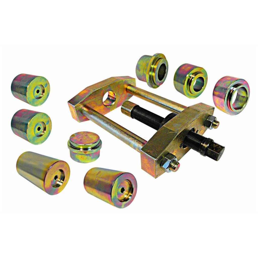 A szerszám a királycsapok eltávolítására és beszerelésére szolgál a kormánycsukló-szerelvényben. A királycsap-présszerszám segítségével nyomja ki a királycsapot a kormánycsuklóból. A szerszám erővel nyomja ki a csapot a házából.