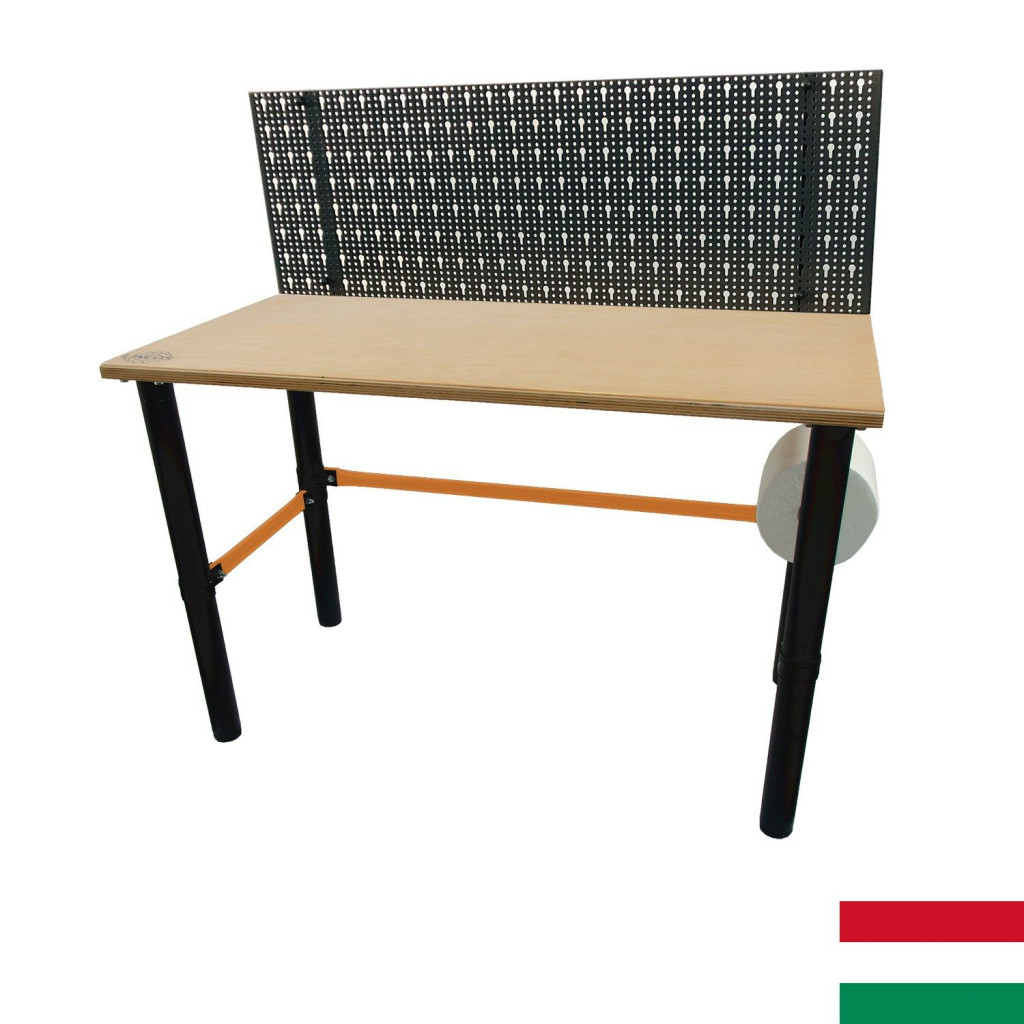 Nagy igénybevételre tervezett munkapad. A munkaasztal használható műhelyben, garázsban, bontóasztalként vagy akár csomagoló asztalként is. A stabil fém lábak külön-külön állíthatóak, egyenetlen felületen is kialakítható a teljesen vízszintes munkapult, minden állítható lábon extra csúszásgátló került elhelyezésre, a még nagyobb stabilitás érdekében.