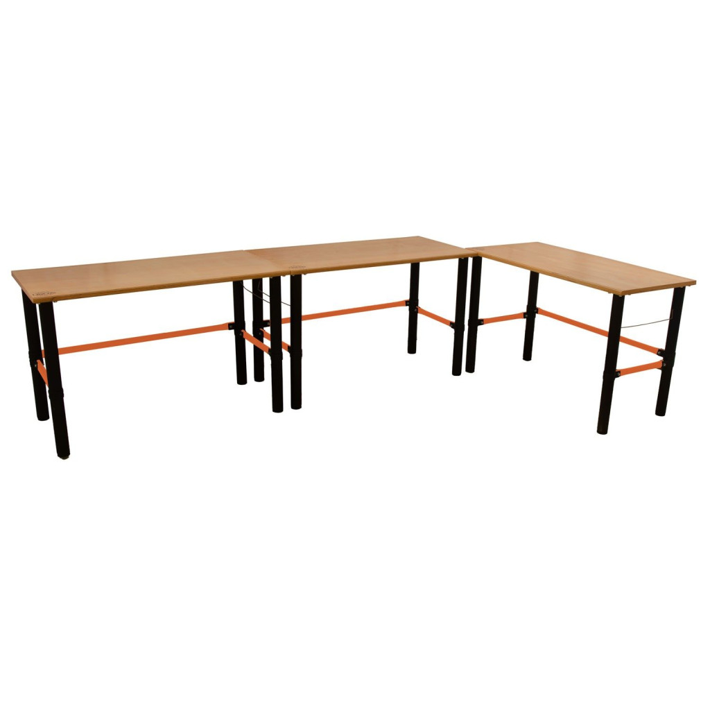 Nagy igénybevételre tervezett munkapad. A munkaasztal használható műhelyben, garázsban, bontóasztalként vagy akár csomagoló asztalként is. A stabil fém lábak külön-külön állíthatóak, egyenetlen felületen is kialakítható a teljesen vízszintes munkapult, minden állítható lábon extra csúszásgátló került elhelyezésre, a még nagyobb stabilitás érdekében.