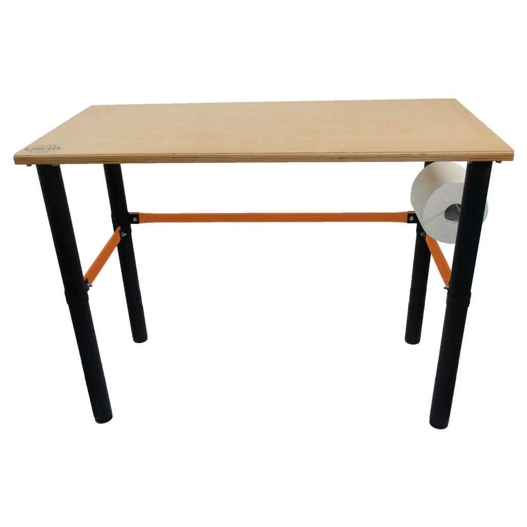 A stabil fém lábak egyedileg állíthatók, így egyenetlen felületeken is teljesen vízszintes munkaasztal jön létre. A munkapad nagyon egyszerűen és gyorsan (körülbelül tíz perc alatt) összeállítható, nincs szükség fúrásra vagy speciális szerszámokra. Csak egy 13 mm-es csavarkulcsra van szüksége.